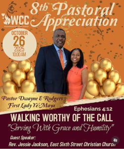 Congratulations to Pastor Dwayne Rogers and First Lady Ye’Maya Rogers! Their pastoral appreciation service will be October 26, with Rev. Jesse Jackson, Jr., as the guest speaker.